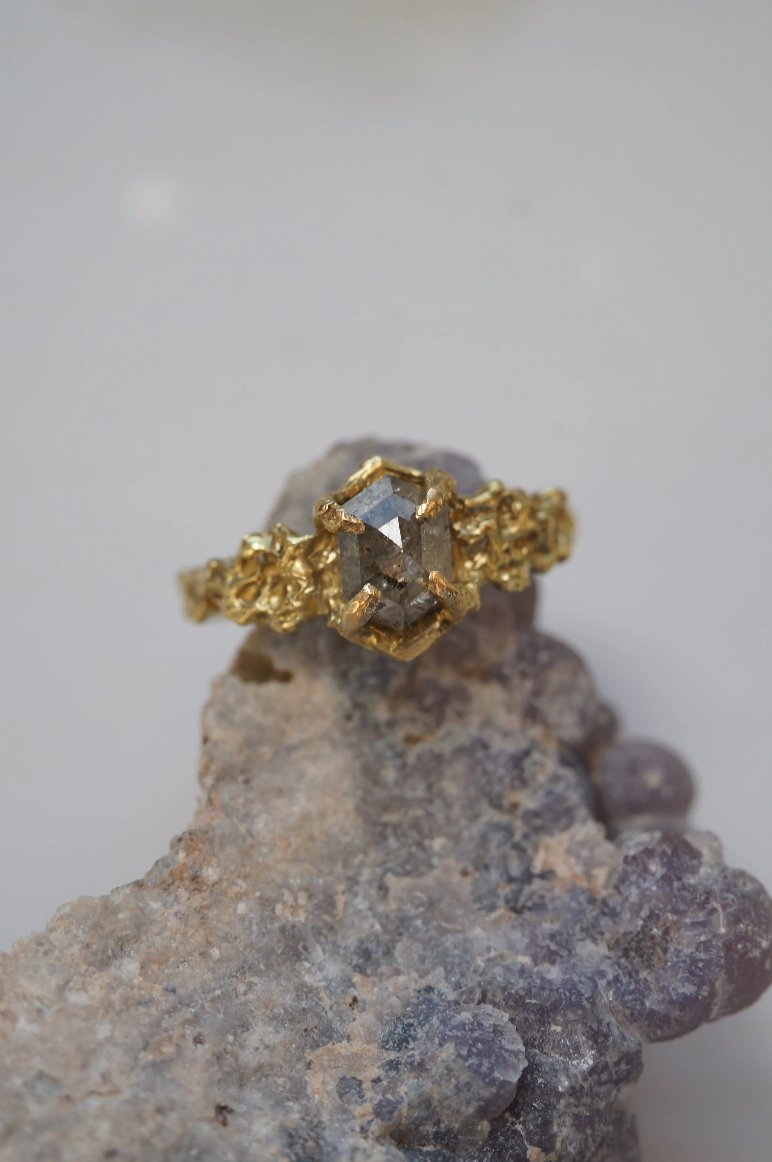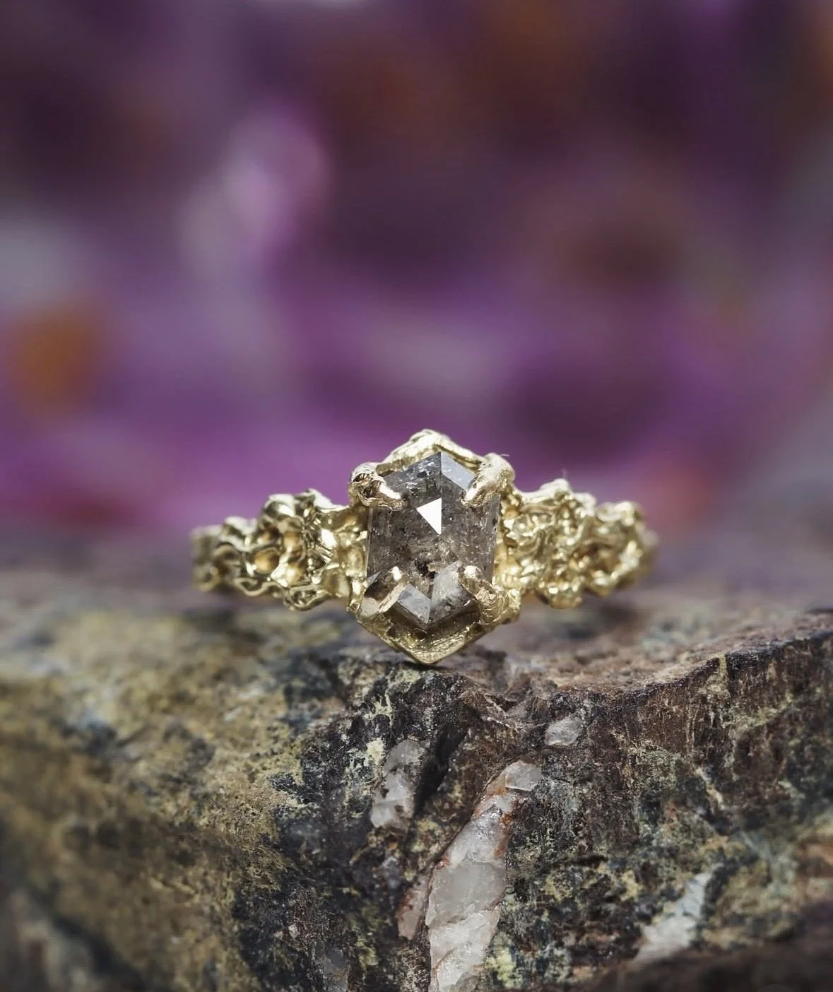 Influenced by the surfaces of Brutalist and Scandinavian jewellery design, and drawing from the stranger sides of nature, alchemy and psychedelia.