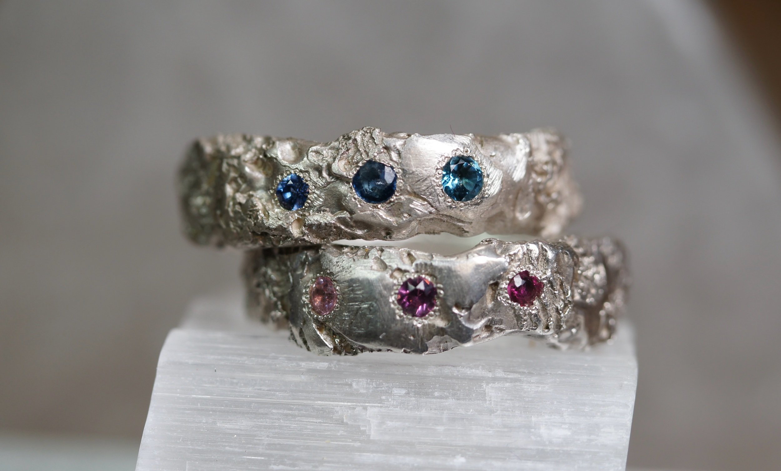 Pink: 1 x garnet, 1 x light pink tourmaline, 1 x ruby